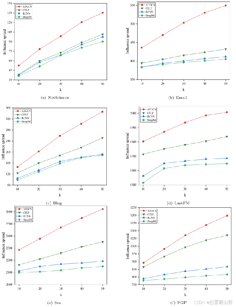 RCNN[13]:该算法通过使用创建的特征矩阵和卷积神经网络来训练和预测每个节点的影响。然后根据预测值选择种子。