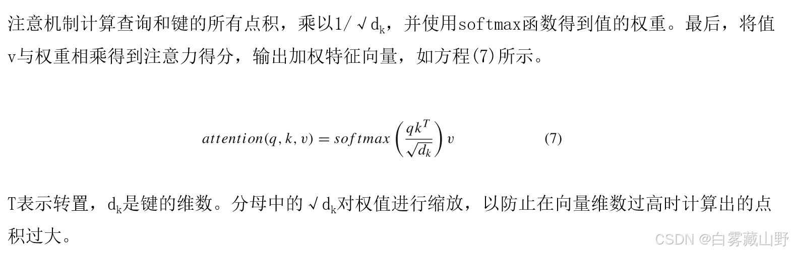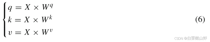 自注意力机制可以学习计算复杂度较低的输入特征之间的联系和相关性[45]。在学习过程中,利用其集成全局信息的优势,使模型能够动态地在节点之间分配注意权值,提高对整个图结构的理解。具体来说,该机制在查询、键、值和输出之间建立映射,所有这些都是向量。首先,将输入向量X分别乘以权矩阵Wq、Wk、Wv,得到q、k、v,分别称为query、key、value。可以表示为方程(6)。