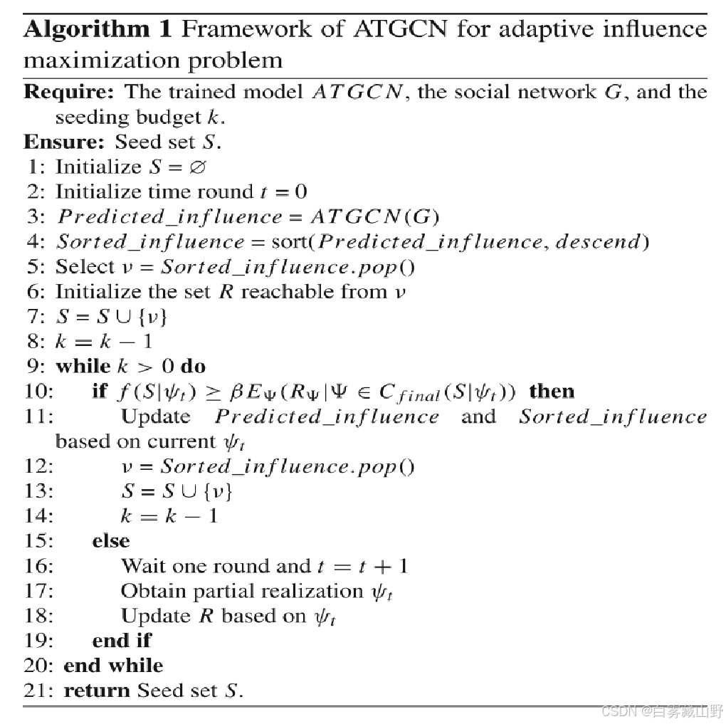 DeepIM[12]:该算法建立在深度学习模型之上,结合skip-gram模型[23]和CARE[24]学习节点表示。然后将学习到的表示用于种子节点的选择。