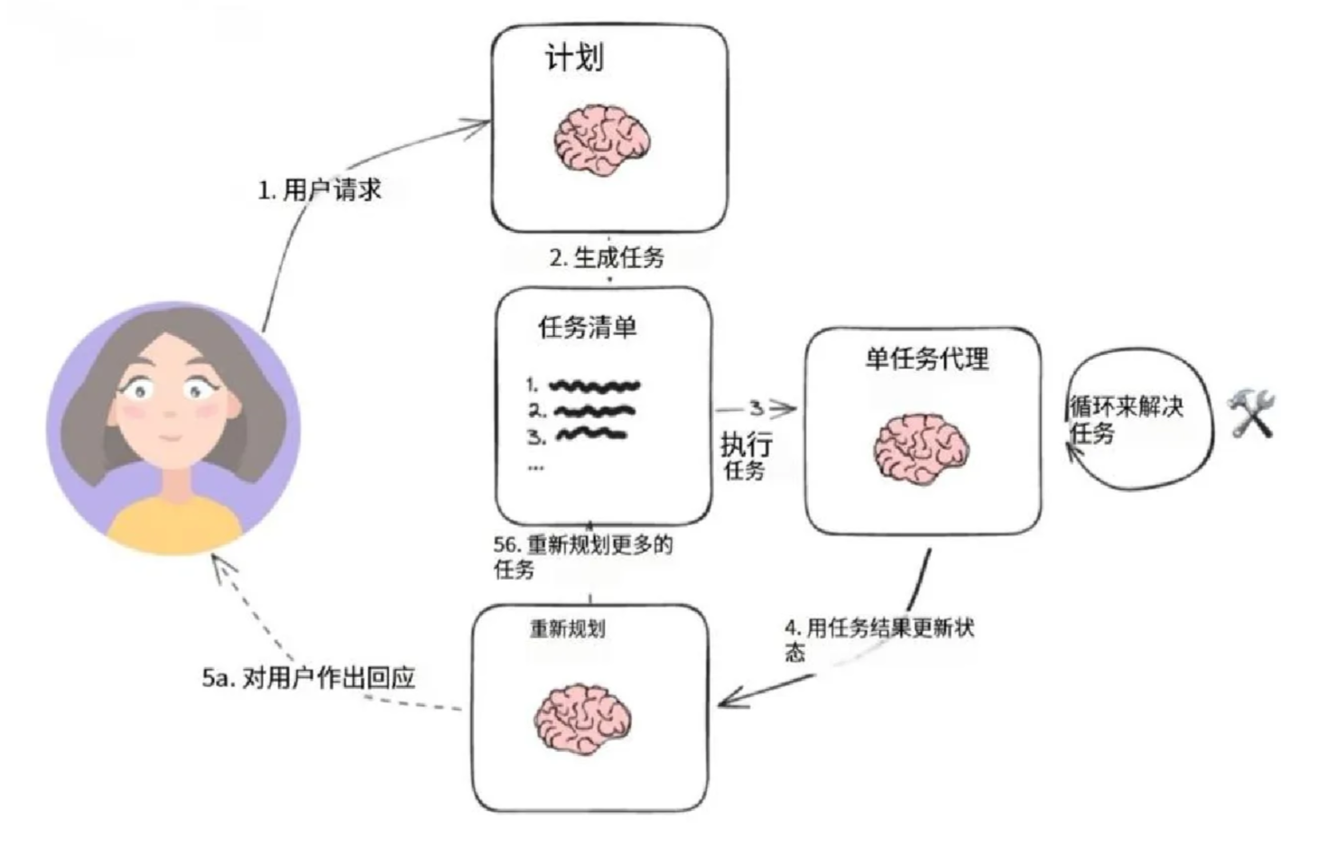 - Agents:是一种基于大模型的应用设计模式,利用LLM的自然语言理解和推理能力,根据用户的需求自动调用外部系统、设备共同去完成任务,例如:用户输入“明天请假一天”,大模型(LLM)自动调用请假系统,发起一个请假申请。