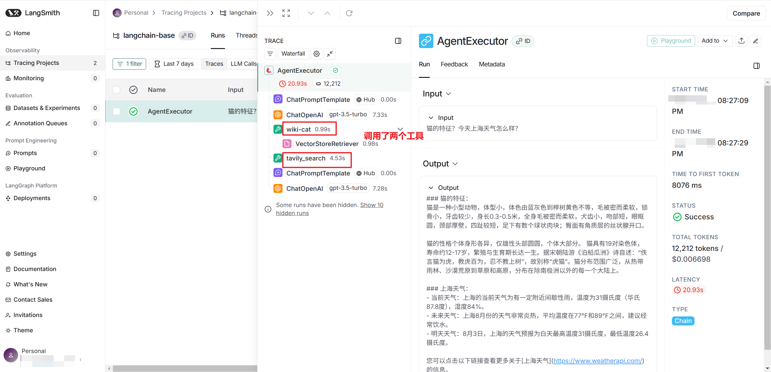 - LangSmith:开发平台,是个云服务,支持Langchaindebug、任务监控。