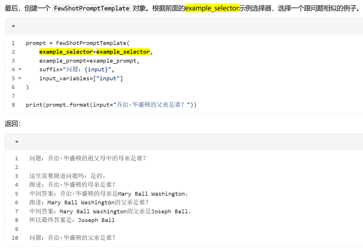 - 一组问答,来提醒模型以什么格式进行返回请求
