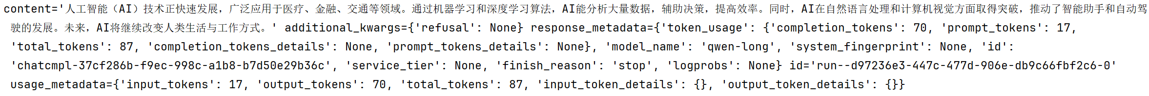 response = chain.invoke({"input": "帮我写一篇100字的ai技术文章"})