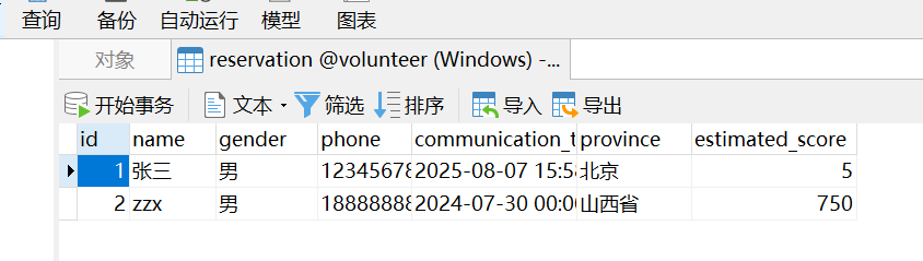 "arguments" : "{\"communicationTime\": \"2024-07-30T00:00\", \"estimatedScore\": 750, \"gender\": \"男\", \"name\": \"zzx\", \"phone\": \"18888888888\", \"province\": \"山西省\"}"