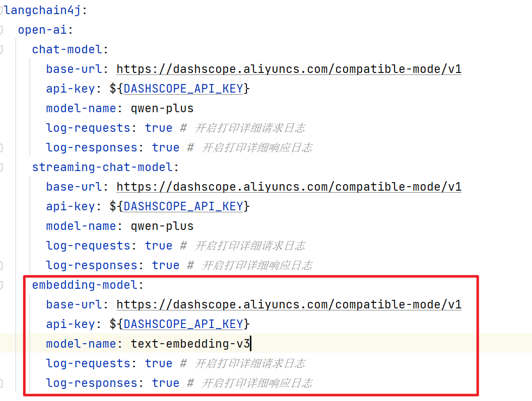 .apiKey(System.getenv("DASHSCOPE_API_KEY")) // 配置到系统的环境变量里面