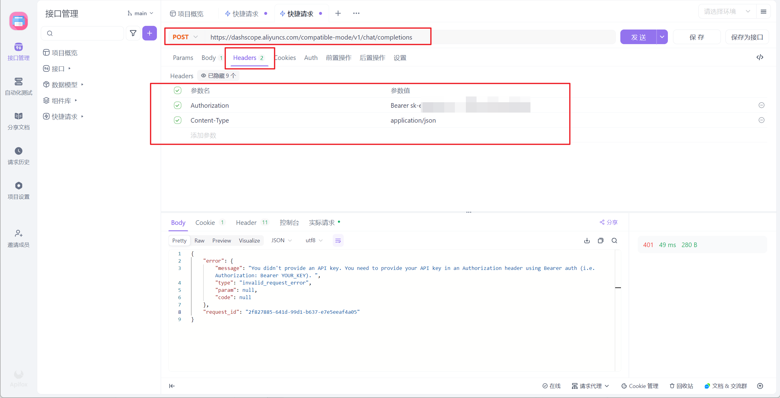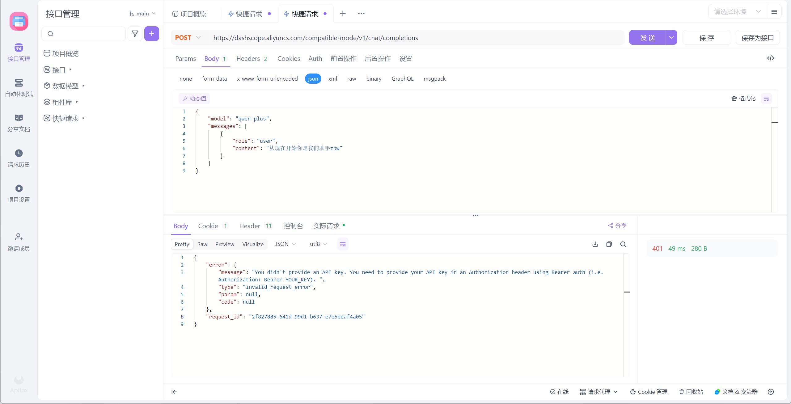 - 打开apifox进行调用