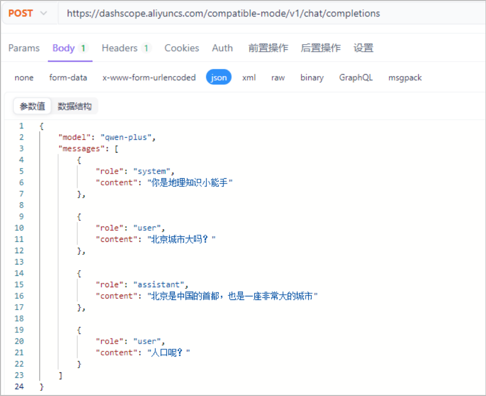 - 填入json请求数据