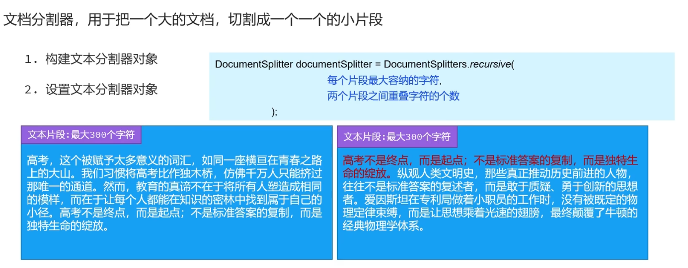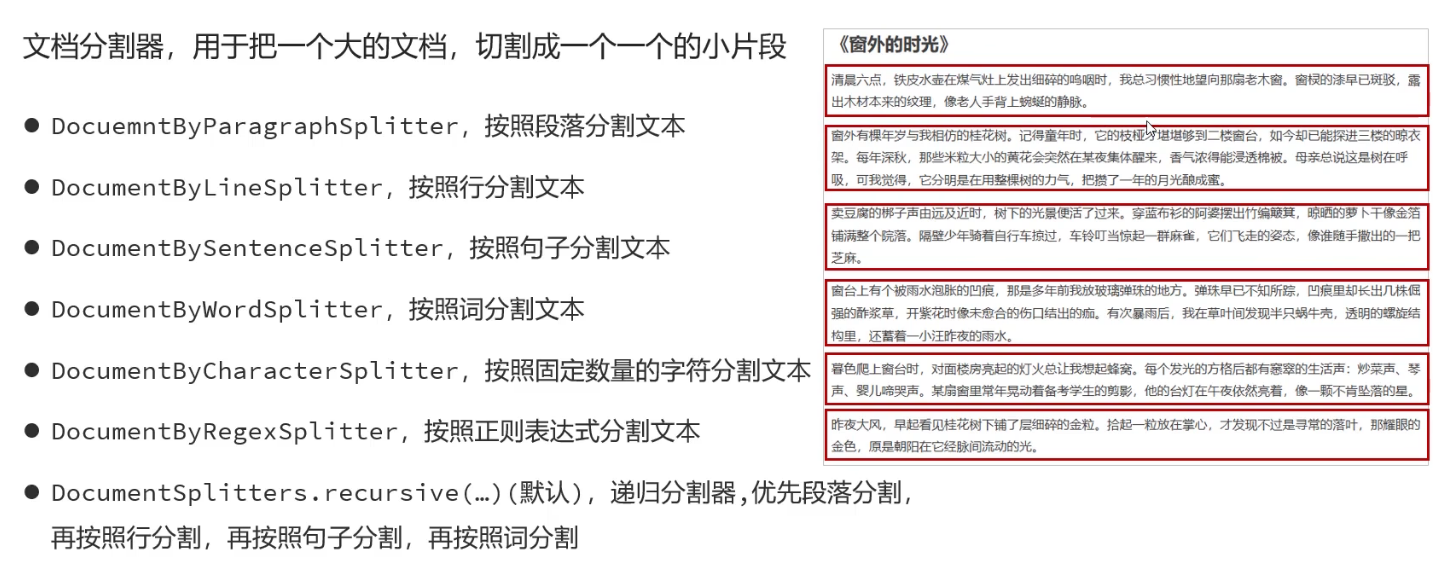 文本分割:长文档分割为小块,提升检索和大模型处理效率。