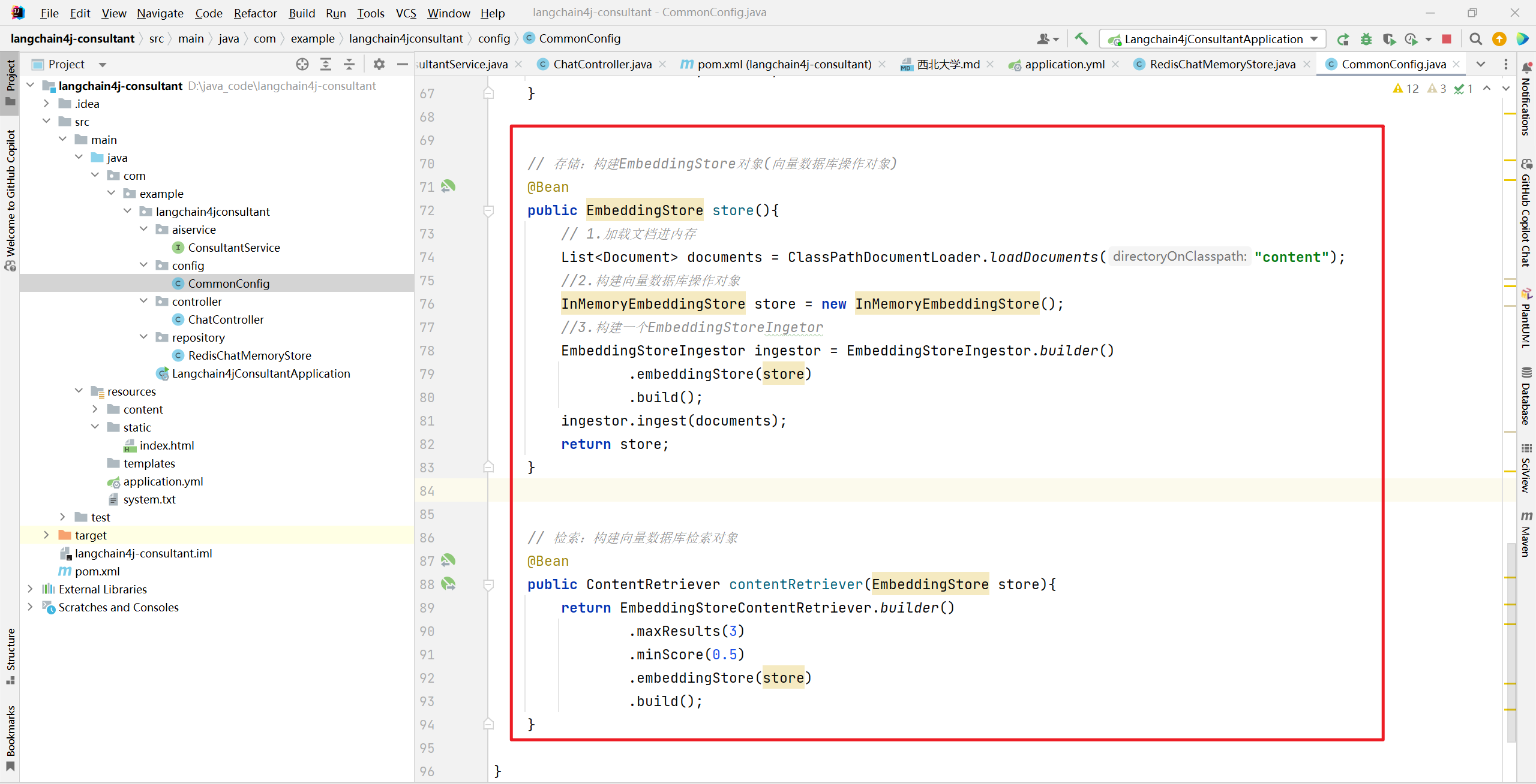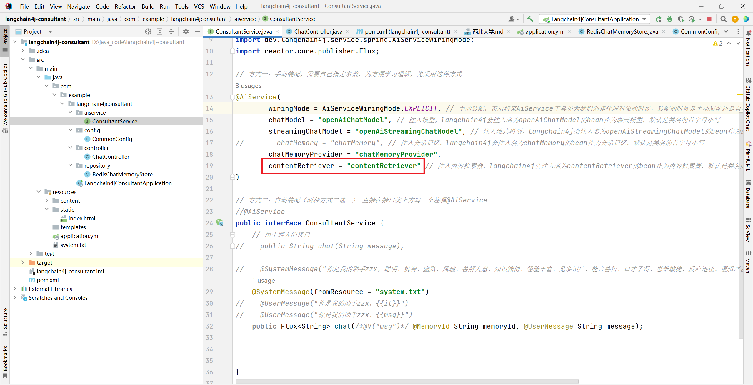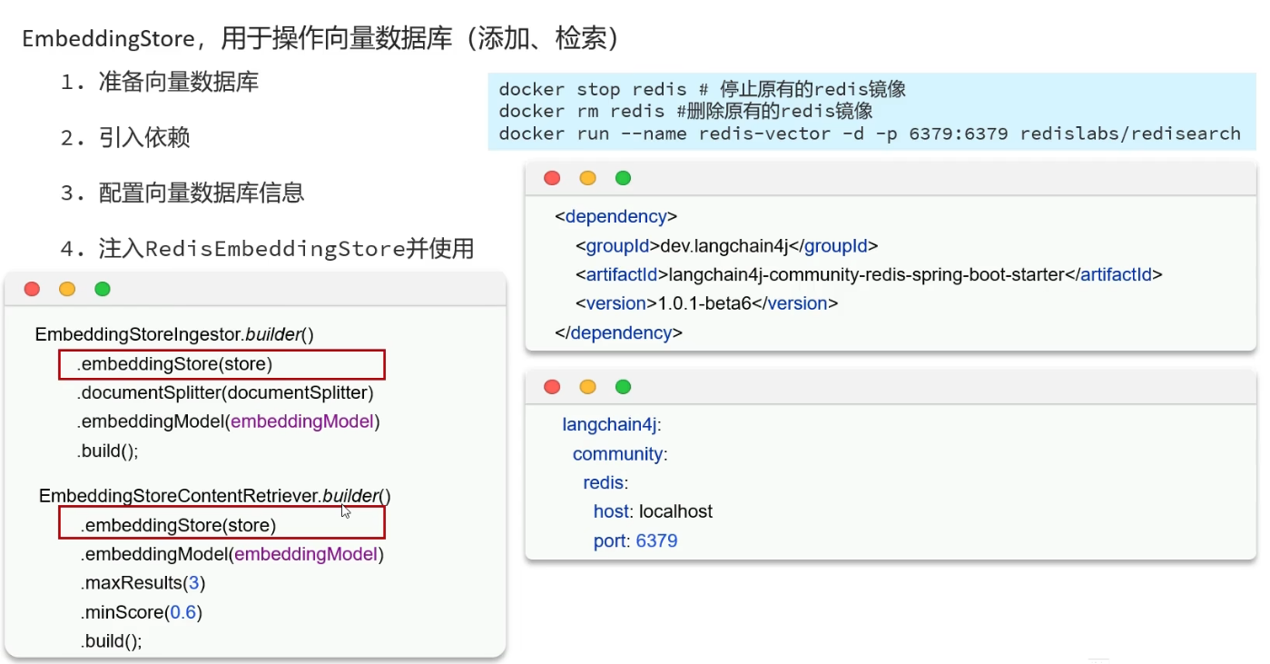 依赖管理:Maven管理依赖,集成LangChain4j、Spring Boot、Redis等库。