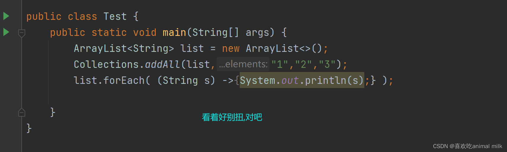 3.省略花括号:如果Lambda表达式的函数体中只有一条语句,则可以省略花括号。