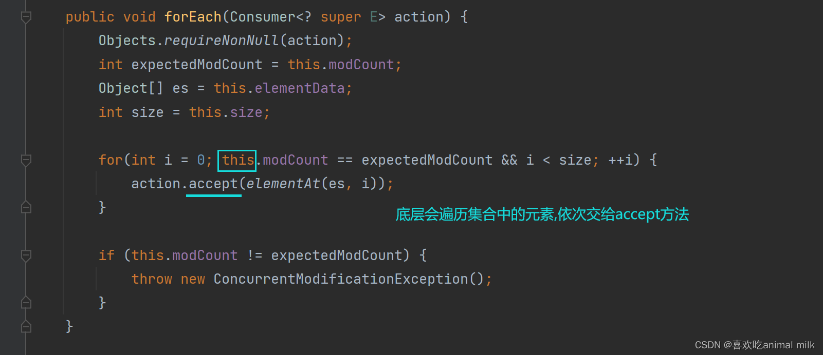 集合中的forEach方法是Java 8中引入的一种遍历集合元素的新方式,它可以让我们更方便地遍历集合中的元素,而且可以使用Lambda表达式或方法引用来处理集合中的元素。