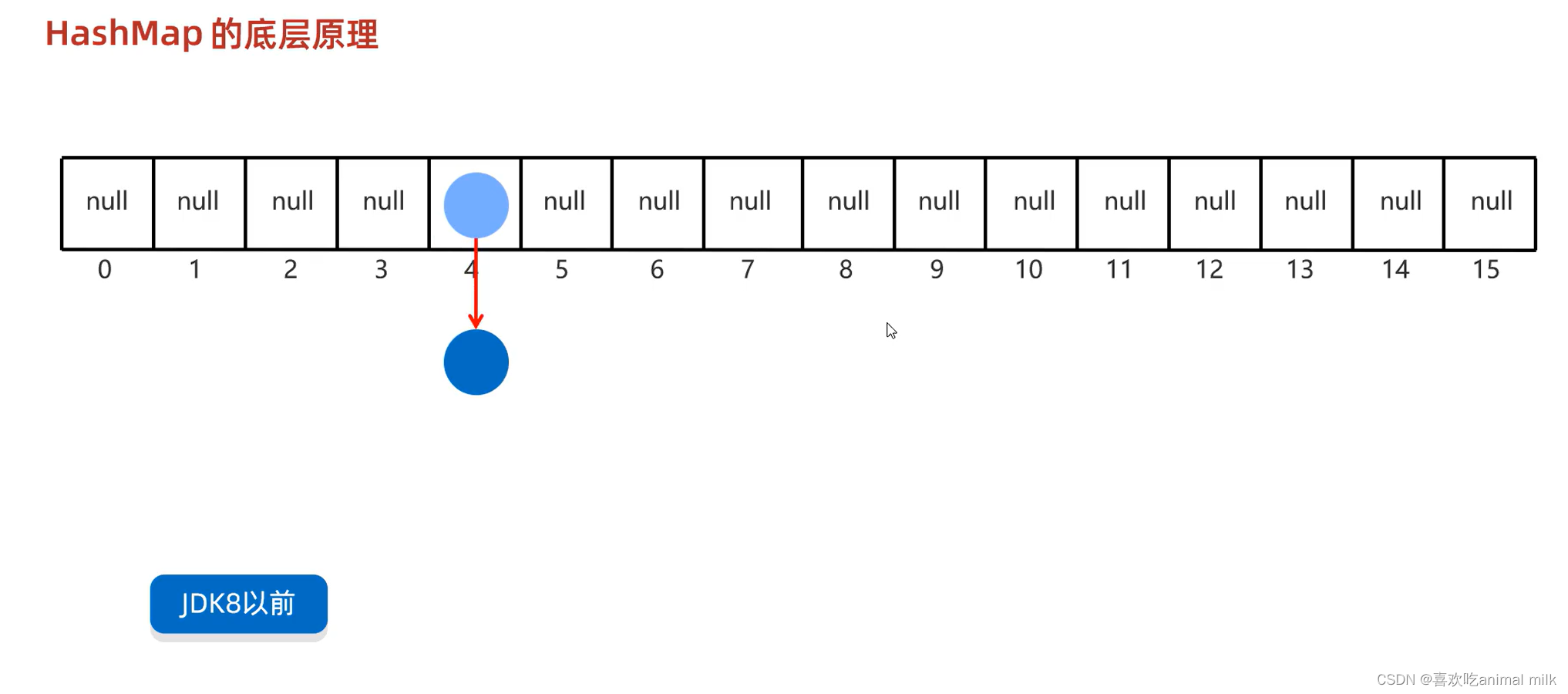 在jdk8之前老元素会挂在新元素的下面,形成链表