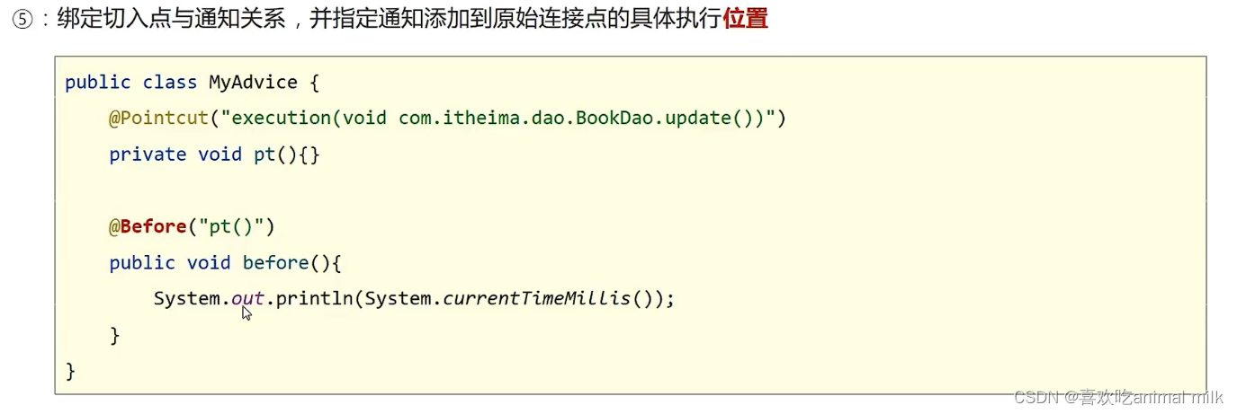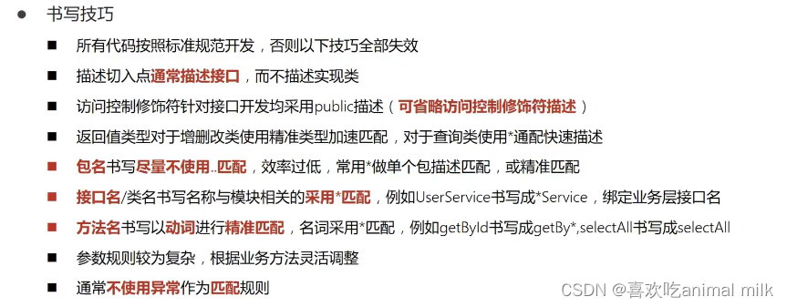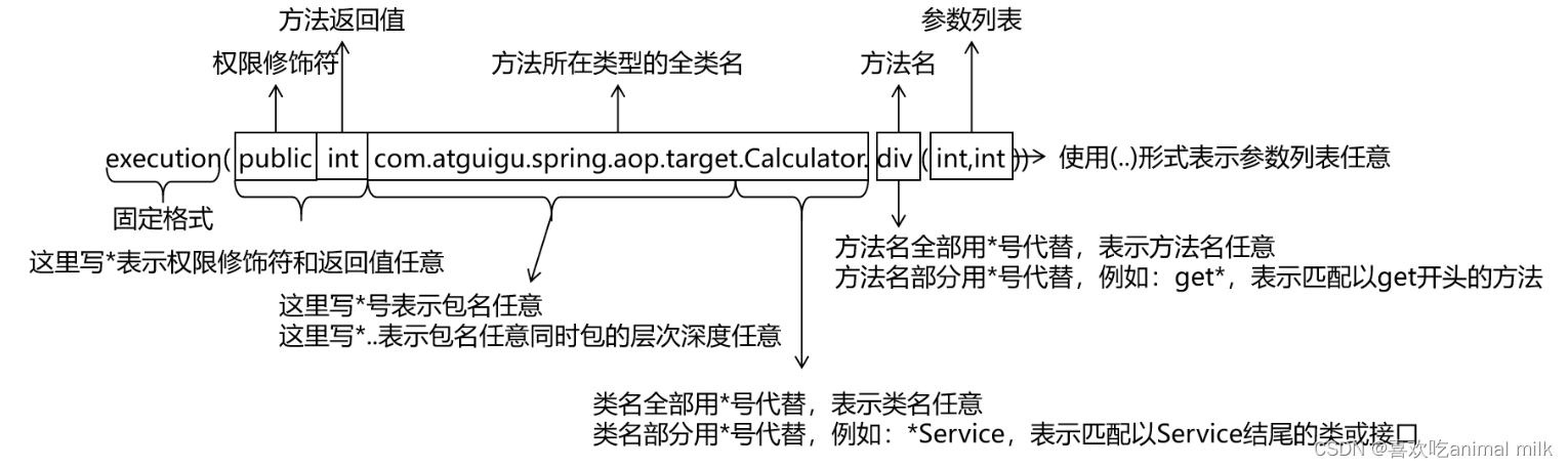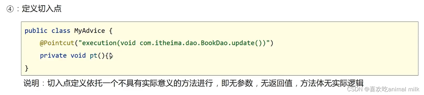 @Pointcut:定义切入点,用于描述需要拦截的连接点。
