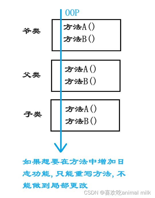 AOP可以说是OOP(Object Oriented Programming,面向对象编程)的补充和完善。OOP引入封装、继承、多态等概念来建立一种对象层次结构,用于模拟公共行为的一个集合。不过OOP允许开发者定义纵向的关系,但并不适合定义横向的关系,例如日志功能。日志代码往往横向地散布在所有对象层次中,而与它对应的对象的核心功能毫无关系对于其他类型的代码,如安全性、异常处理和透明的持续性也都是如此,这种散布在各处的无关的代码被称为横切(cross cutting),在OOP设计中,它导致了大量代码的重复,而不利于各个模块的重用。