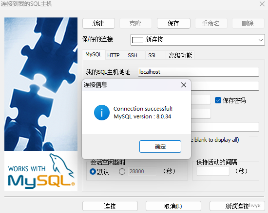 之后我们打开SQLyog输入新密码连接就能连接成功了。