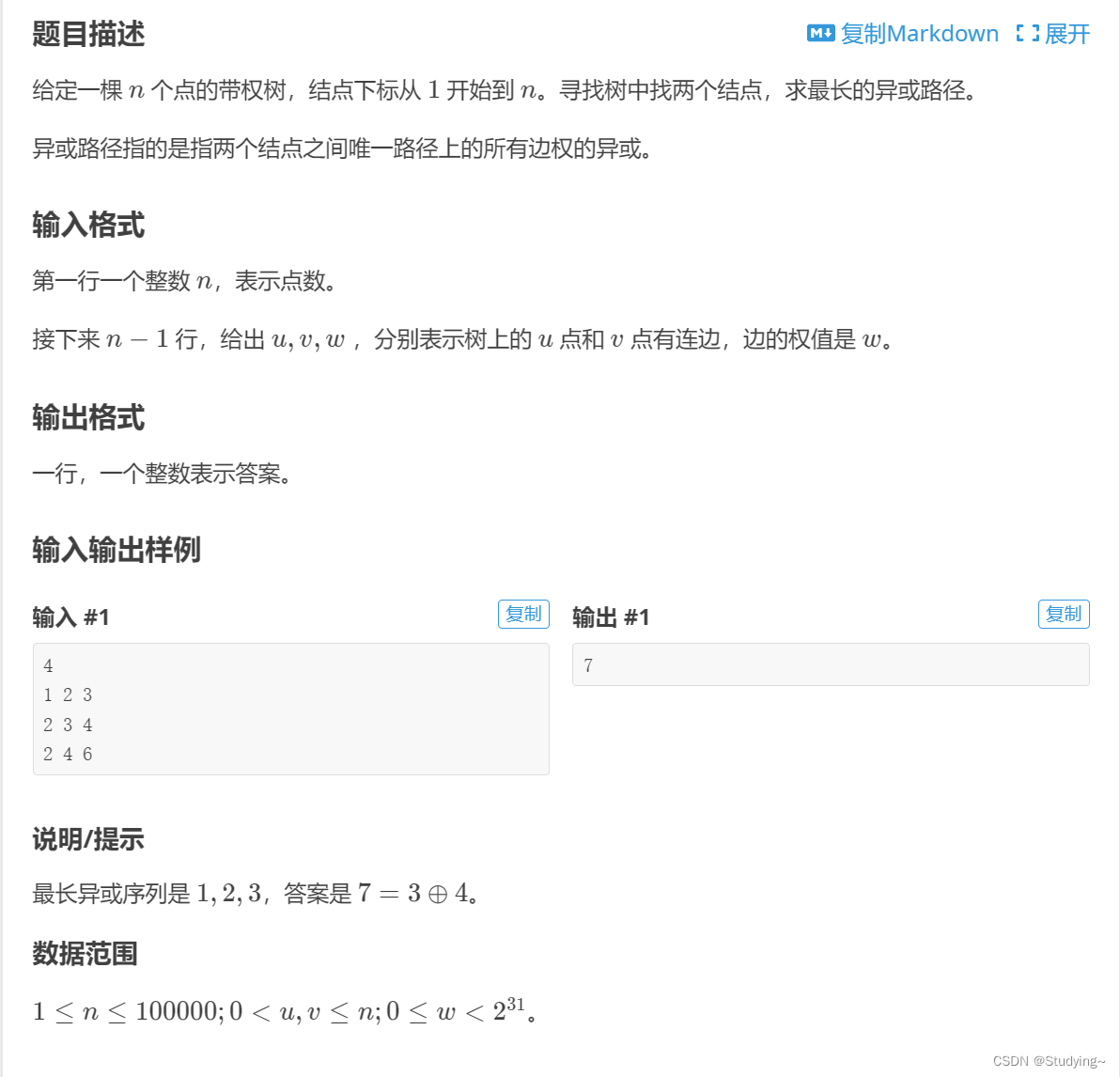 最长异或路径:
