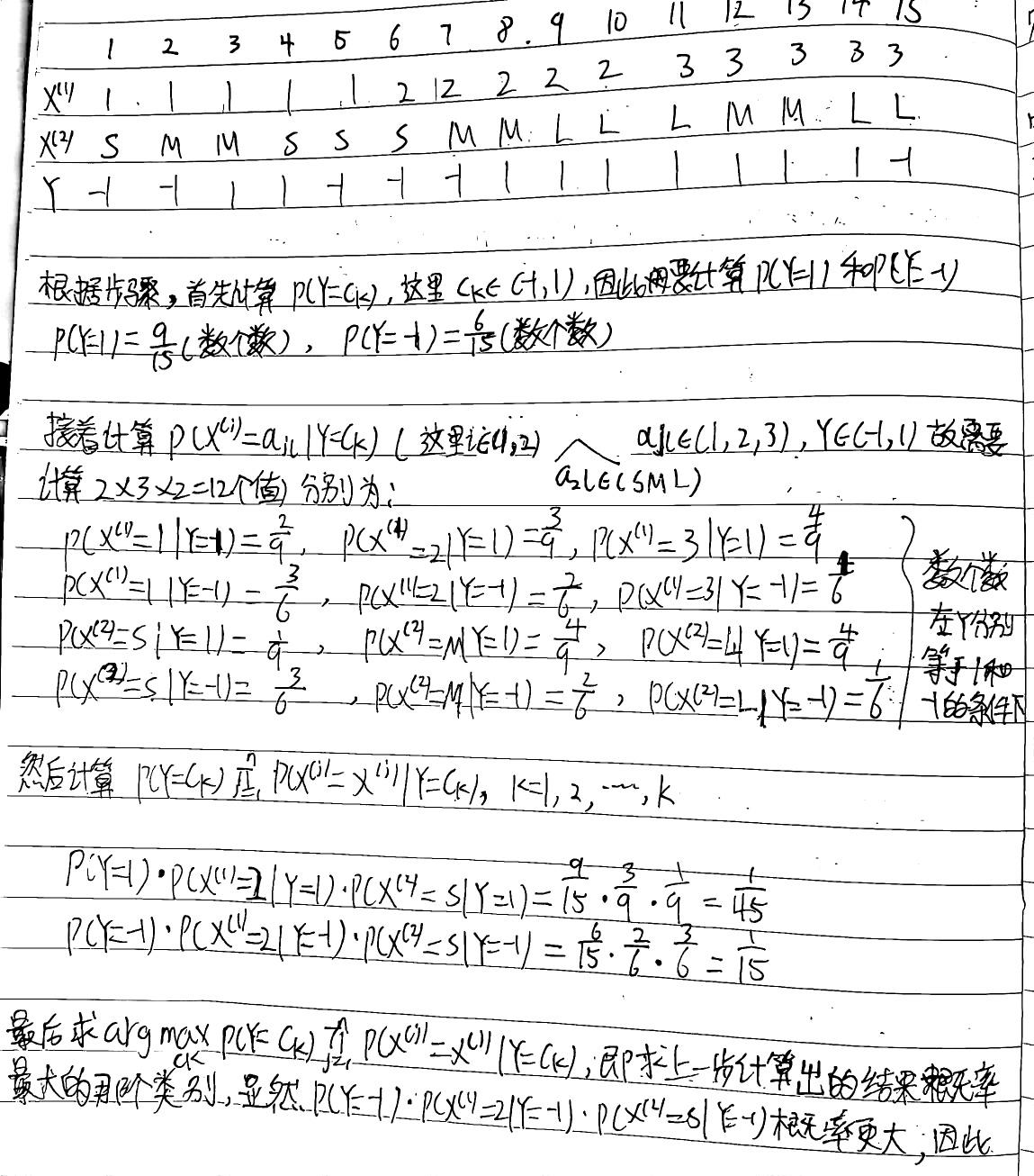 试由下表的训练数据学习一个朴素贝叶斯分类器来确定的类标,记为y。表中
