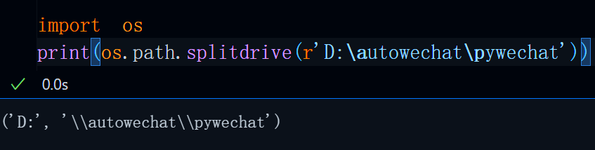print(os.path.splitdrive(r'D:\autowechat\pywechat'))
