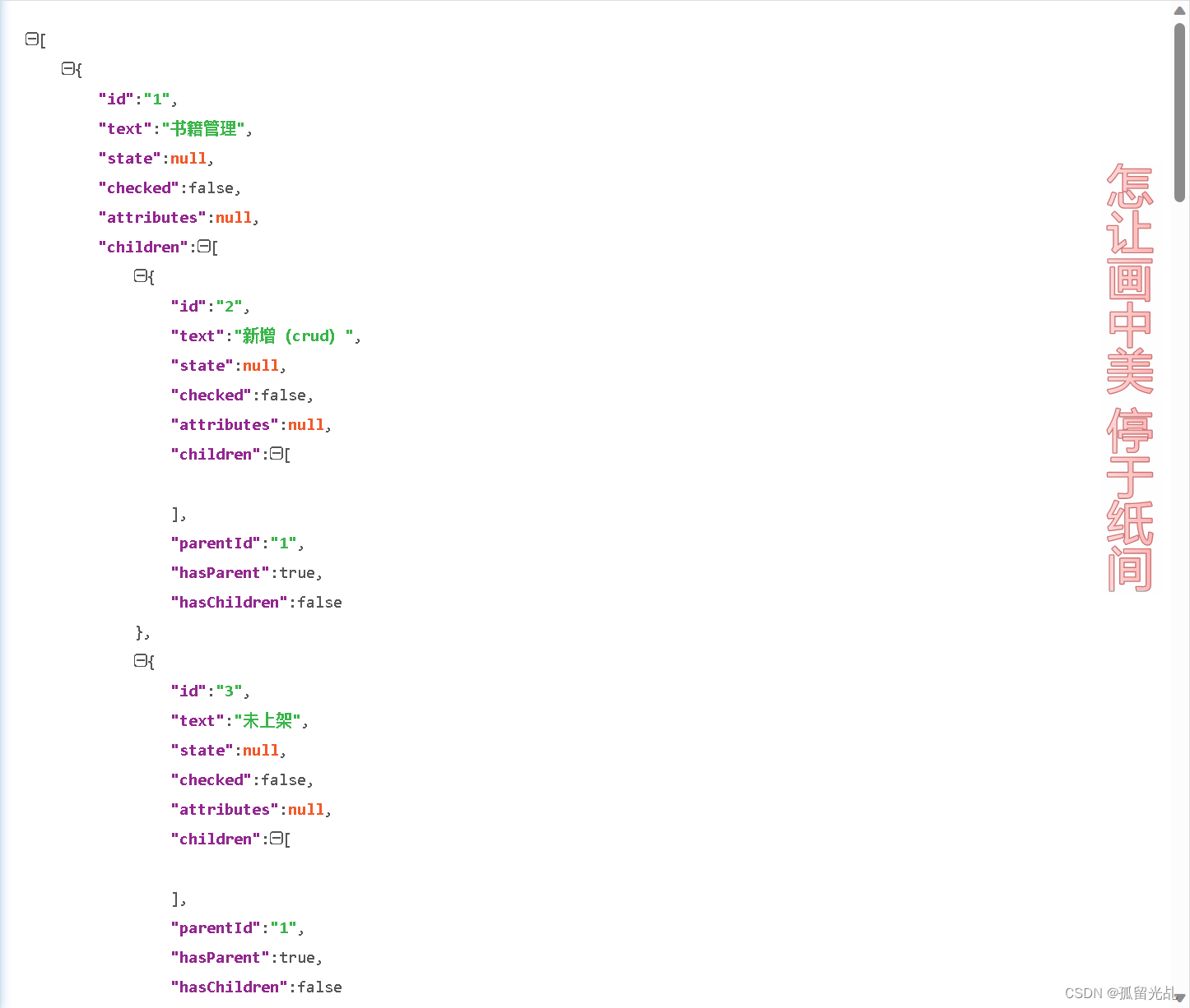 从表中可以分析出这是一个三级菜单,‘权限管理’是父节点,‘书籍管理’,‘订单管理’是二级节点,其他的是三级节点