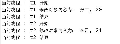 System.out.println("当前线程 : " + Thread.currentThread().getName() + " 修改对象内容为: "