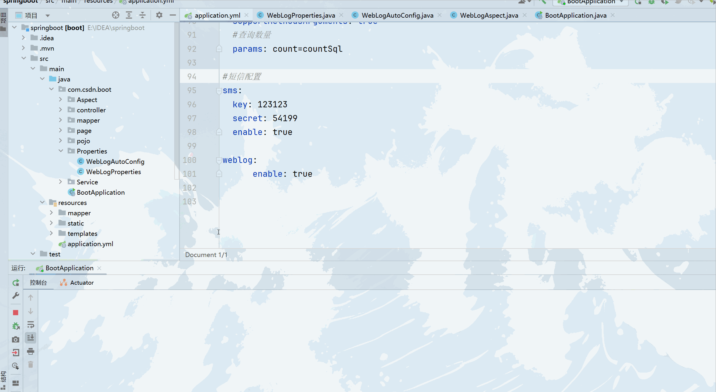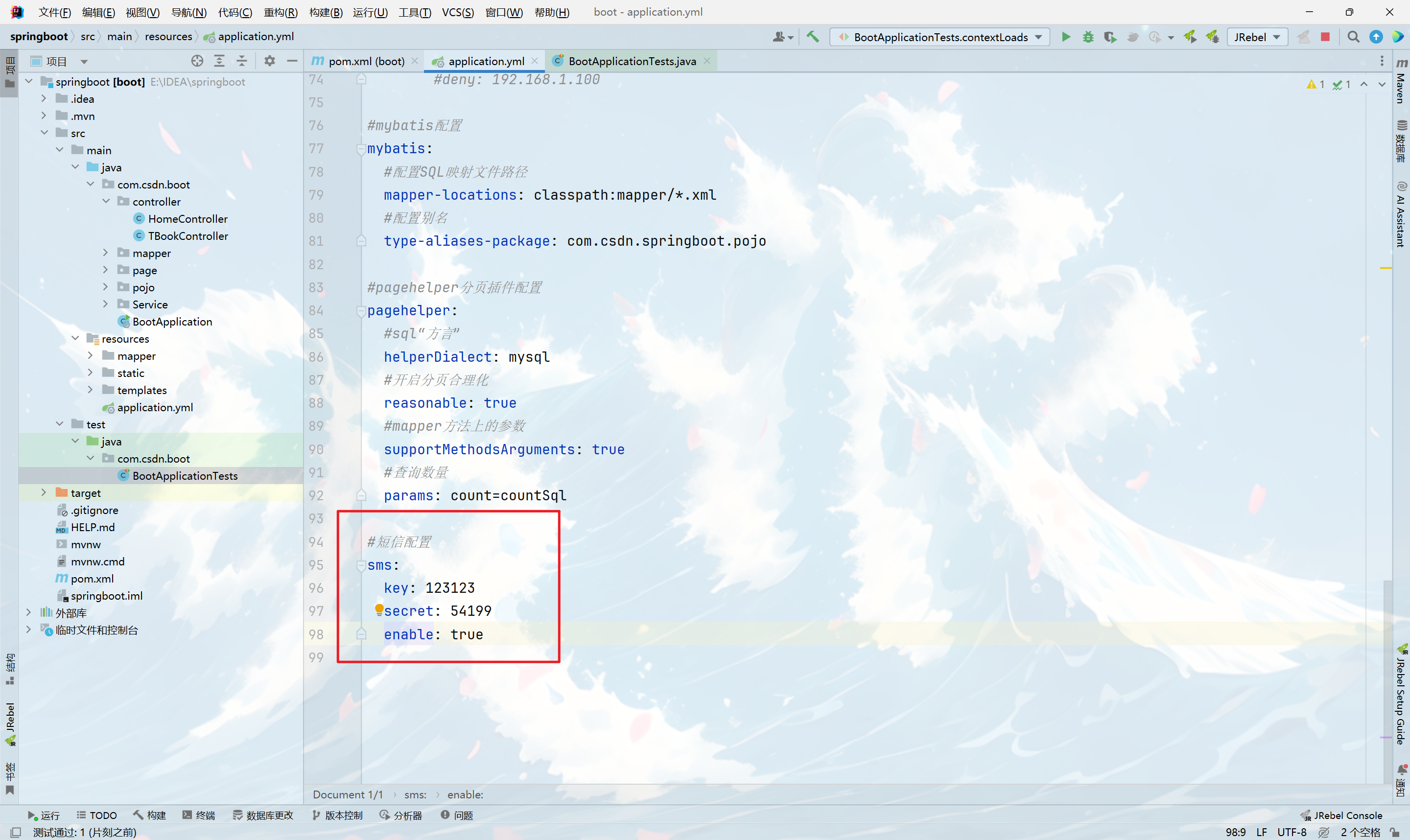 我们在application.properties配置一下SmsProperties