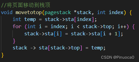 查找到页面之后就要将页面移到栈顶,所以需要一个移动函数,先将目标页面取出来,然后将目标页面到栈顶的所有页面下沉一位,之后将目标页面移动到栈顶。