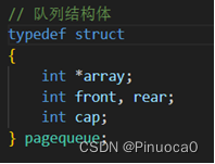 Int *array指向整数的指针用于存储整数数组的地址,这个数组就是队列的实际存储空间,front, rear整型变量表示队列的前段和后端,cap表示队列容量。