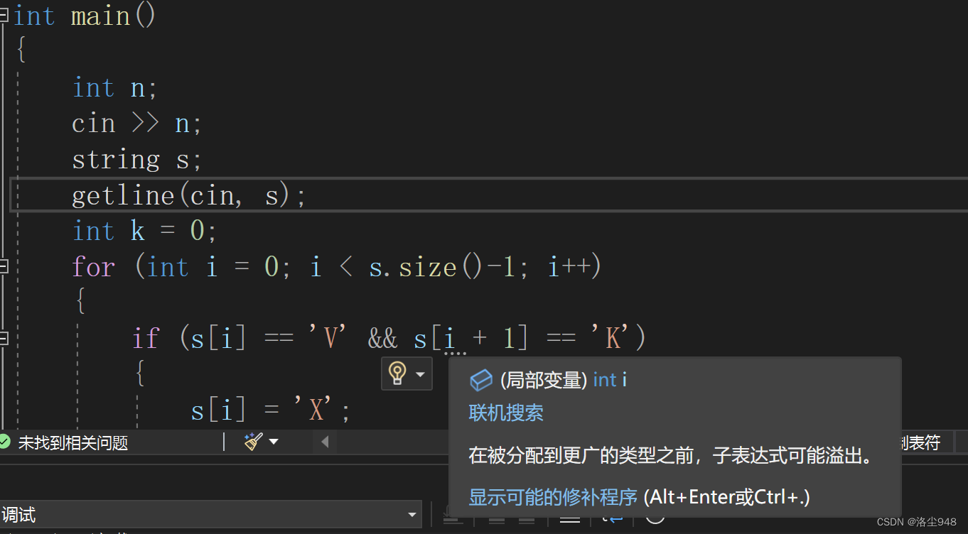 具体原因不清楚,反正是由于getline引起的。一个解决办法是不用getline,改用cin>>s;虽然还是会报可能溢出,但是实际没有出现上面的失败。有没有大佬能解答一下。