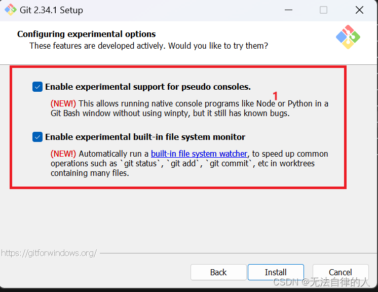 - 额外的配置选项,这里面默认都没有选,可以将这两个选框勾选上,支持(node、python)然后选择install