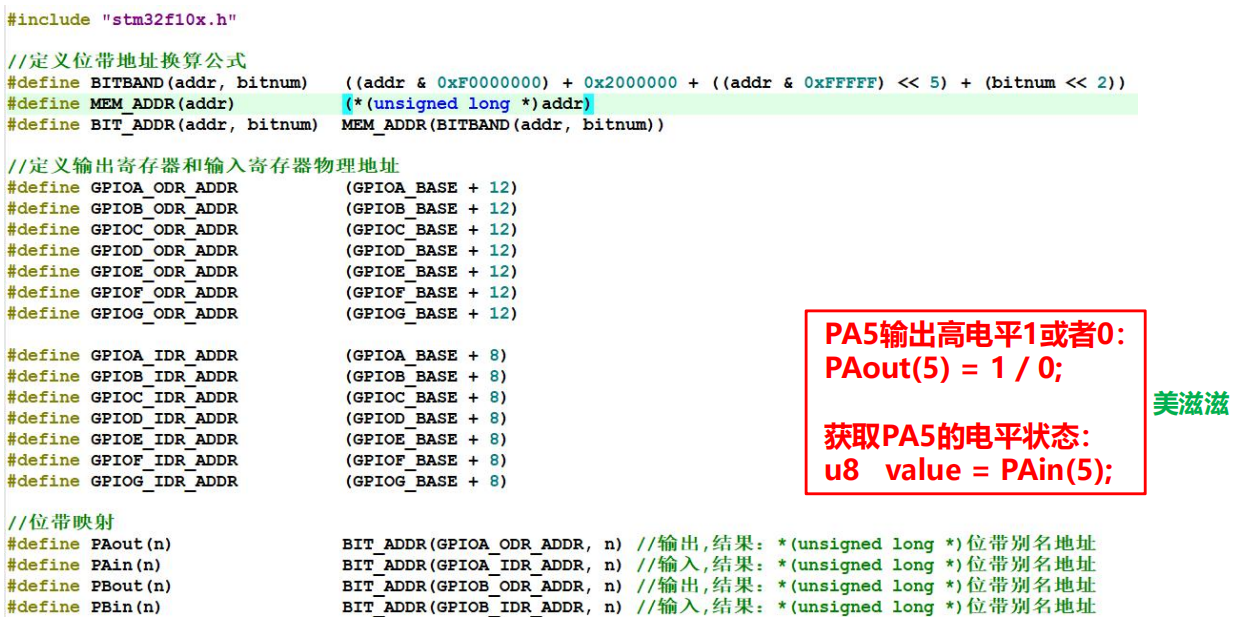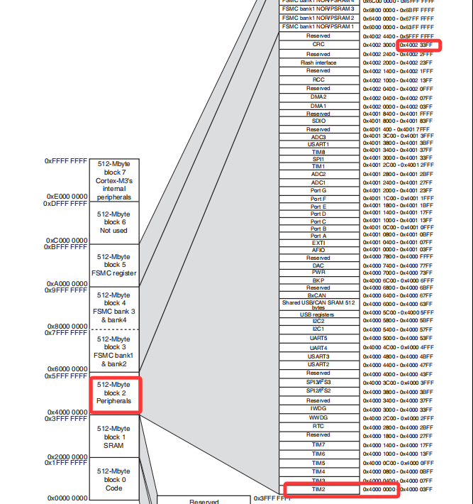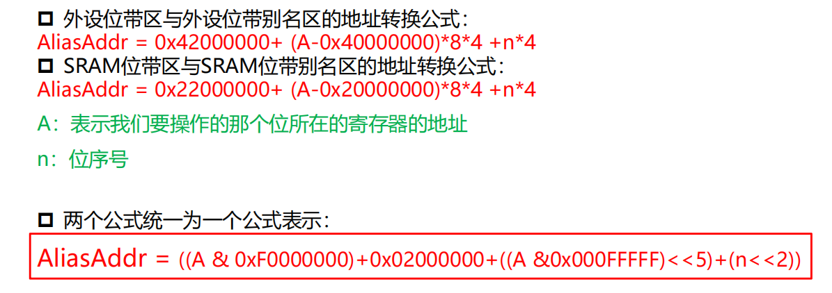 各个控制器地址空间(位带区)范围是:40000000 - 40100000 > 400233FF,意味着所有的寄存器所有的比特位都能去做映射.
