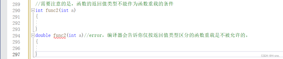 仅按返回值类型区分的同名函数不能作为函数重载的条件