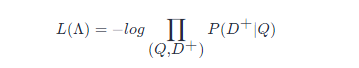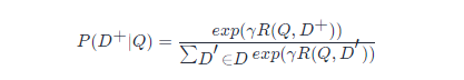 通过 softmax 函数可以把 Query 与正样本 Doc 的语义相似性转化为一个后验概率:
