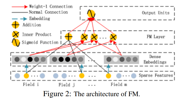 FM(Factorization Machines,因子分解机)最早由 Steffen Rendle 于 2010 年在 ICDM 上提出,它是一种通用的预测方法,在即使数据非常稀疏的情况下,依然能估计出可靠的参数进行预测。与传统的简单线性模型不同的是,因子分解机考虑了特征间的交叉,对所有嵌套变量交互进行建模(类似于 SVM 中的核函数),因此在推荐系统和计算广告领域关注的点击率 CTR(click-through rate)和转化率 CVR(conversion rate)两项指标上有着良好的表现。