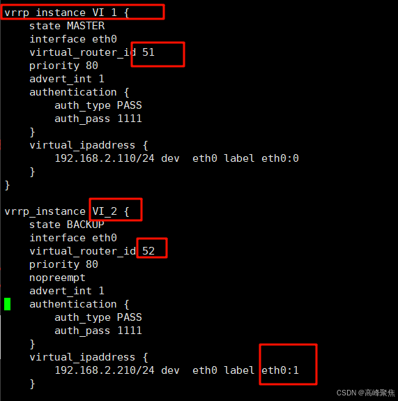 - 虚拟路由器标识:VRID(0-255),唯一标识虚拟路由器