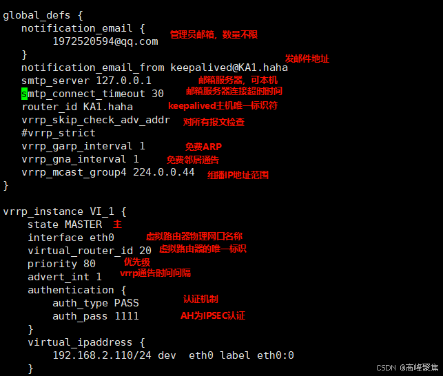 [root@KA1 ~]# vim /etc/keepalived/keepalived.conf