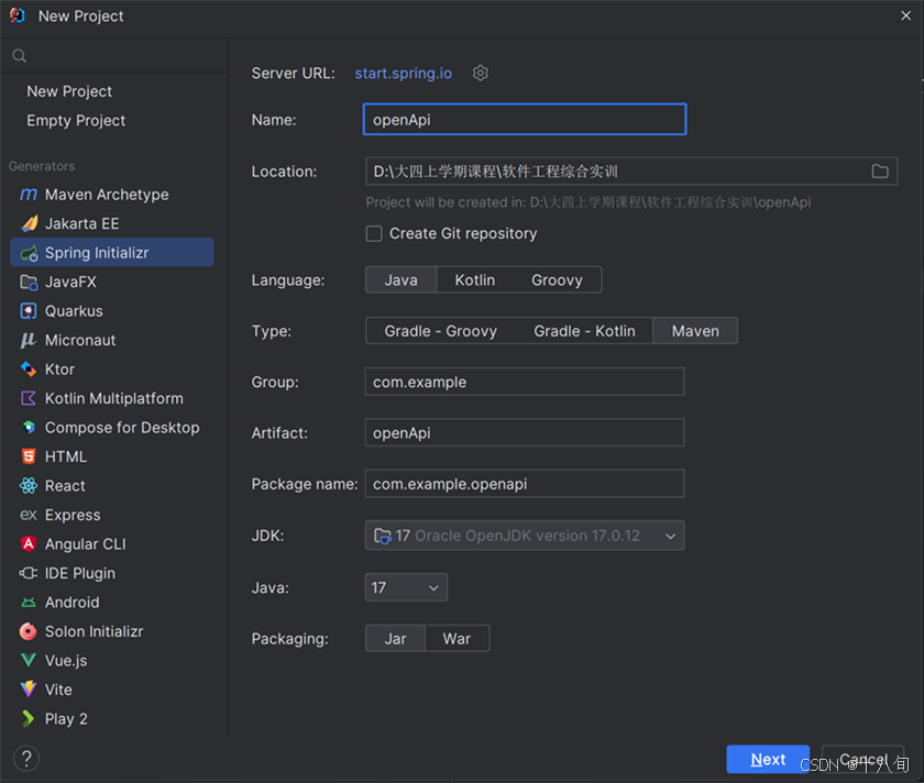 打开pom文件,导入langchain4j依赖,导入后,刷新依赖,右上角有个小m,点击即可