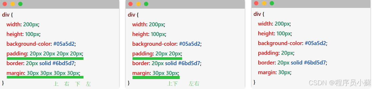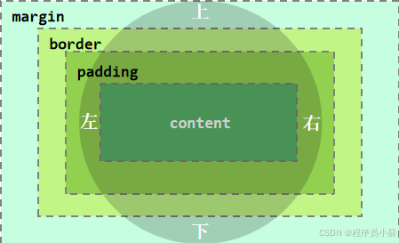 - 盒子模型组成:内容区域(content)、内边距区域(padding)、边框区域(border)、外边距区域(margin)