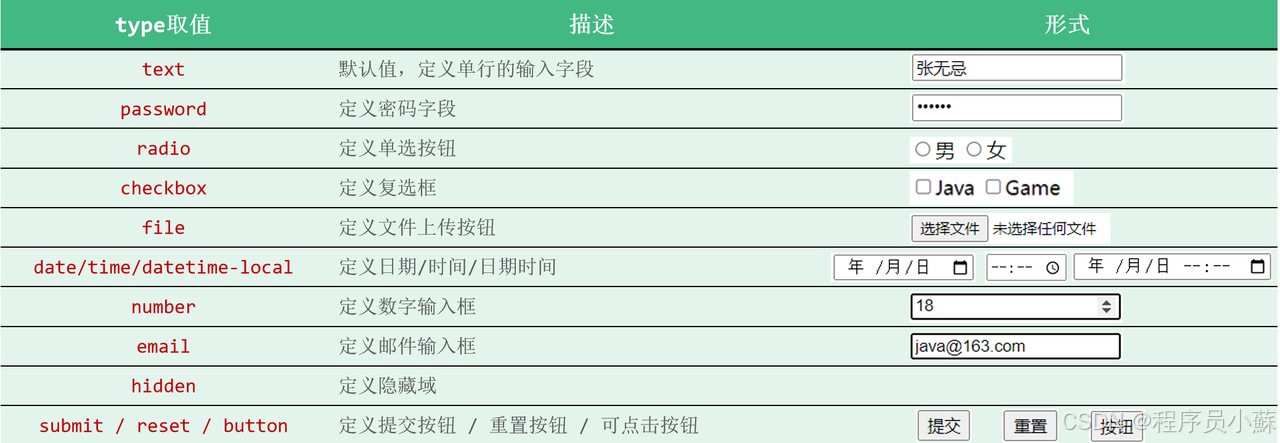 - 表单项:不同类型的 input 元素、下拉列表、文本域等。