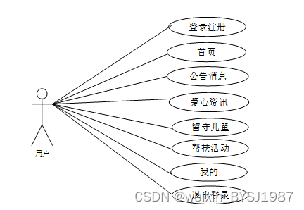 通过2.3功能的分析,得出了本社区留守儿童帮扶系统的用例图: