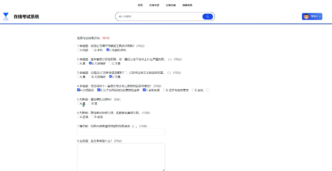 在线考试:在线考试模块支持多种类型的测试,具备自动评分和即时反馈功能,使学生能够随时随地进行自我评估并查看成绩与解析。
