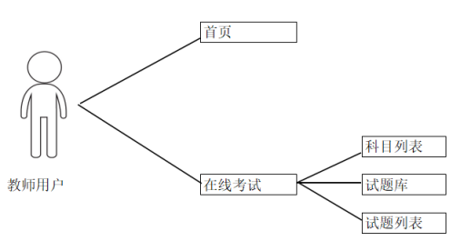 本系统的主要功能就是学生用户登录后,可搜索和进行在线考试考试,教师用户和管理员登录系统后台后可对在线考试进行管理,包括增改删查操作。测试设计如下所示: