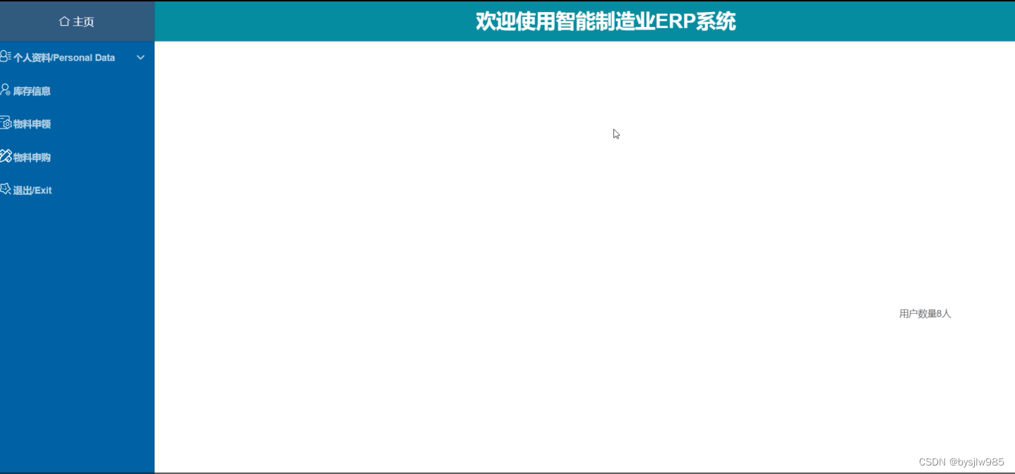 生产用户登录通过号、密码、滑动图片验证进行登录智能制造业ERP系统主界面,可查看主页、个人资料、销售订单、库存信息、生产计划、物料申请等内容,生产用户可进行相对应操作,如图5-12所示。