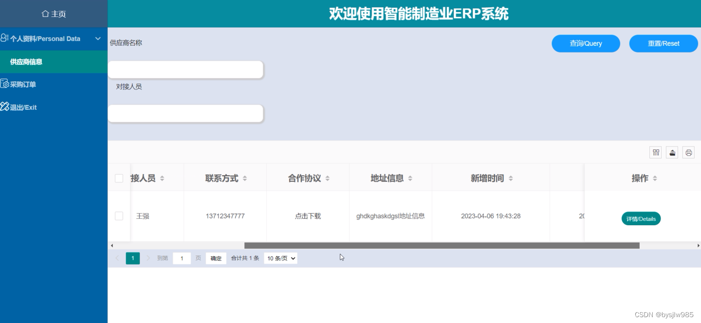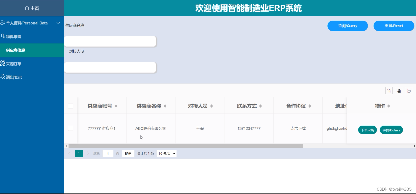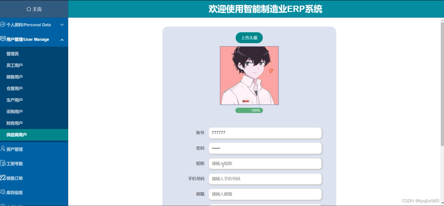 本设计主要实现集人性化、高效率、便捷等优点于一身的智能制造业ERP系统,完成主页、个人资料(个人信息、修改密码)用户管理(管理员、员工用户、销售用户、仓管用户、生产用户、财务用户、供应商用户)资产管理、工资管理、销售订单、库存信息、生产计划、物料申领、物料申购、供应商信息、采购订单、资产类型、部门名称等各功能模块,系统通过浏览器与服务器进行通信,实现数据的交互与变更。只需通过一台电脑,动动手指就可以操作系统,实现数据通信管理。整个系统的设计过程都充分考虑了数据的安全、稳定及可靠等问题,而且操作过程简单。本系统通过科学的管理方式、便捷的服务提高了工作效率,减少了数据存储上的错误和遗漏。