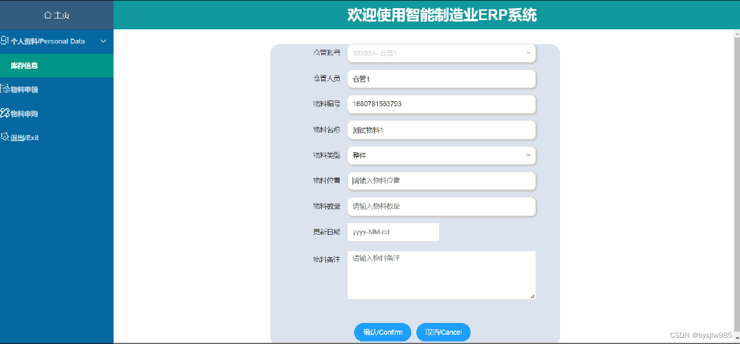 仓管用户登录通过号、密码、滑动图片验证进行登录智能制造业ERP系统主界面,进入到操作界面,进行相对应操作,如图5-8所示。
