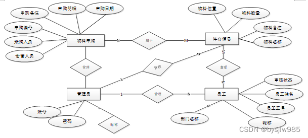 对于一个要开发的系统来说,E-R图可以让别人能更快更轻松的了解此系统的事务及它们之间的关系。根据系统分析阶段所得出的结论确定了在智能制造业ERP系统中存在着多个实体分别是资产管理、工资管理、销售订单、库存信息、生产计划、物料申领、物料申购、供应商信息、采购订单等。