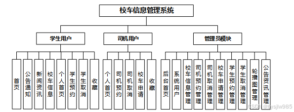图3.1 陕科大附小学生乘坐校车信息管理系统功能模块图