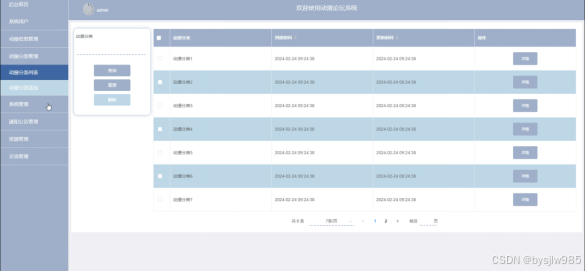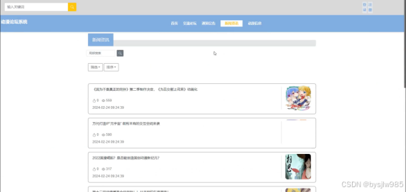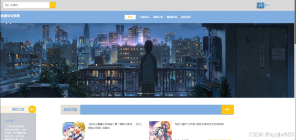 This forum website has two roles: administrator and registered user. The administrator functions include backend homepage, system user management, system management, anime information management, anime classification management, notification and announcement management, resource management, communication management, etc. The registered user functions include personal center, communication forum, notification announcement, news and information, anime information, etc. Therefore, it has certain practicality.