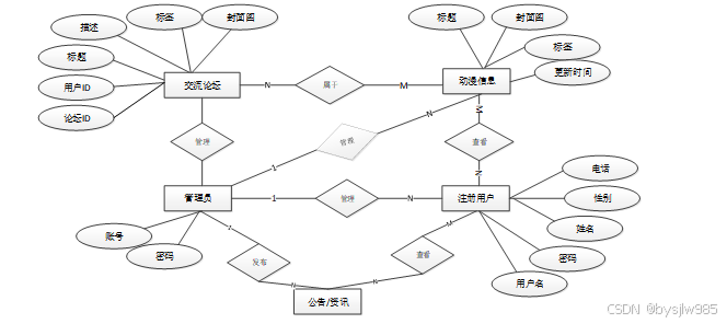 (2) 动漫论坛系统实体属性如下图3-4所示