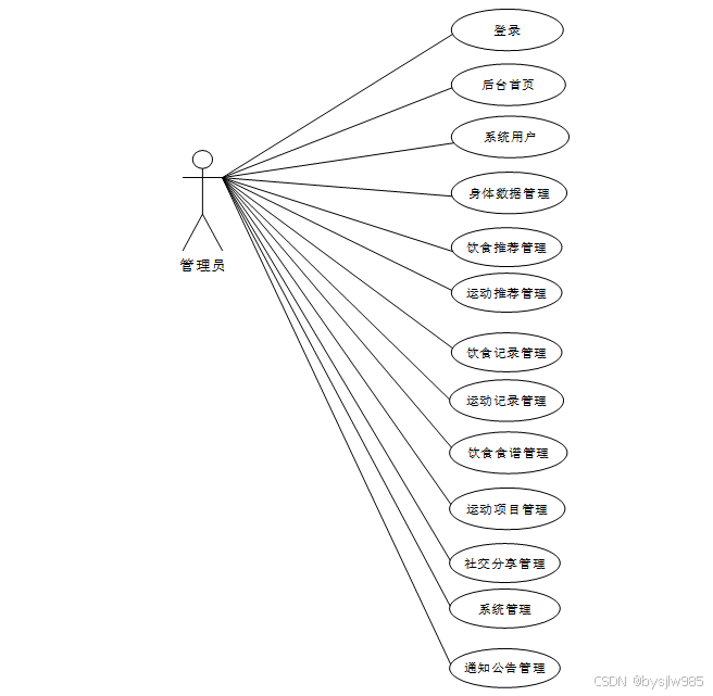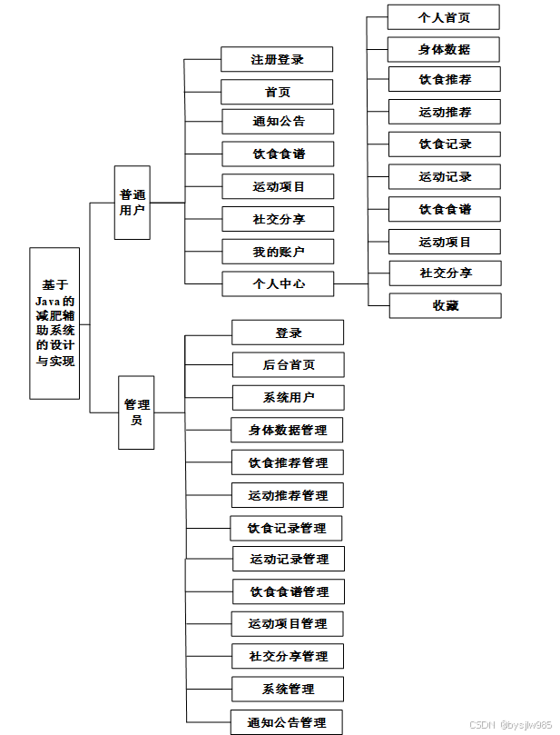 减肥辅助系统划分为了普通用户模块和管理员模块这两大部分。