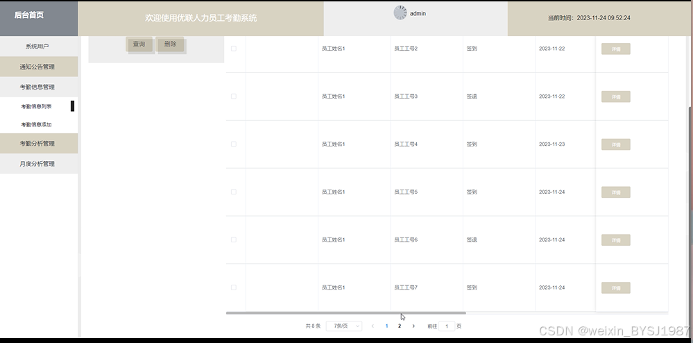 考勤信息管理: 管理员可以查看和管理员工的考勤信息,包括考勤记录的导入、修改和删除等操作。